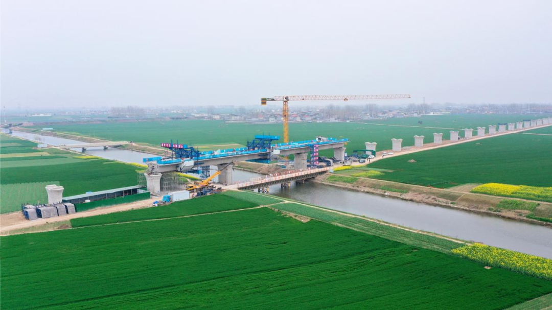2026年3月,平漯周高鐵商周特大橋跨賈魯河連續梁合龍