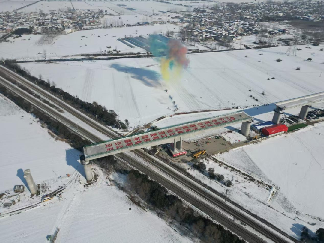 2026年1月,平漯周高鐵跨孟寶鐵路轉體梁成功轉體