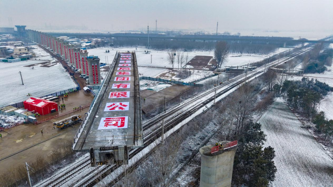 2026年1月,平漯周高鐵跨京廣鐵路轉體梁成功轉體