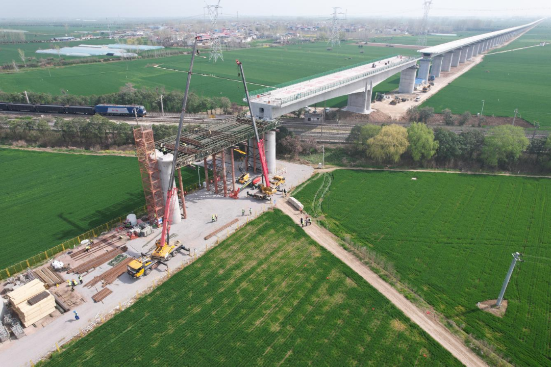 2026年3月,平漯周高鐵架梁現場