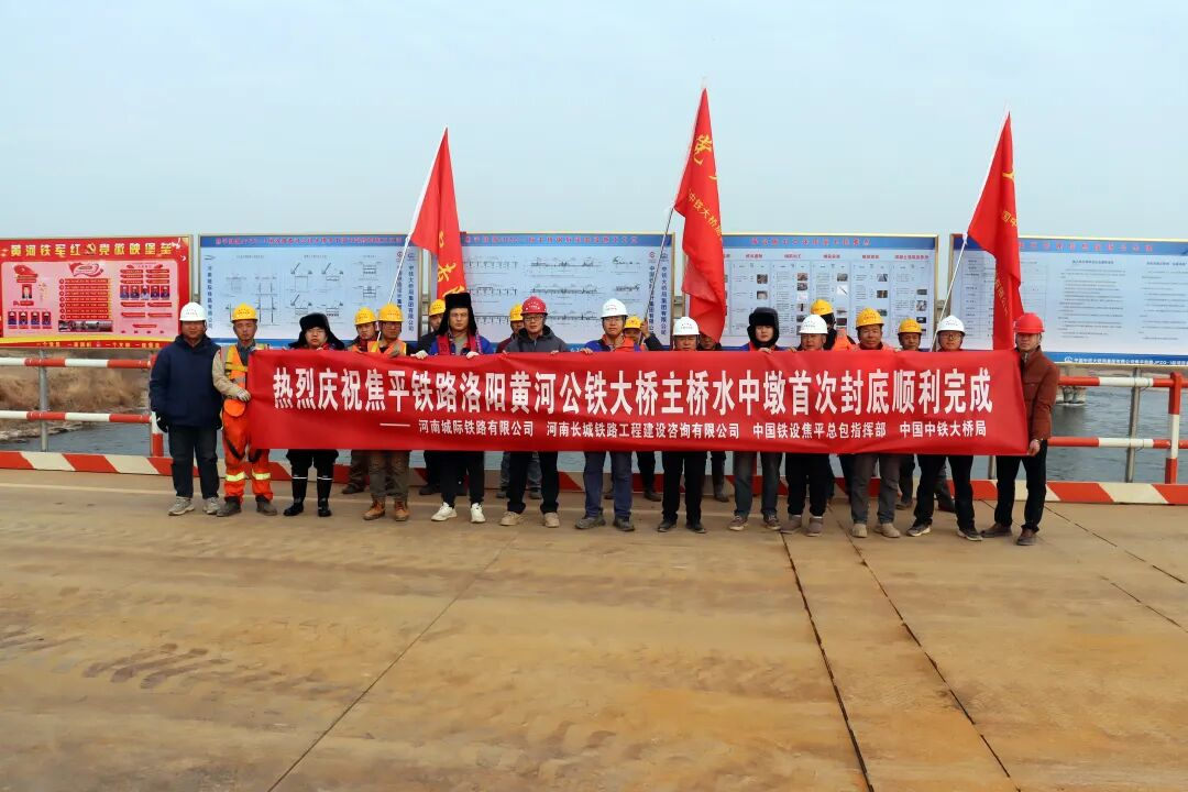 2月4日,焦洛平高鐵洛陽黃河公鐵大橋主橋水中墩首次封底順利完成,標志著大橋建設正式進入水下基礎施工關鍵階段,為汛期前承臺施工完成、安全度汛奠定了堅實基礎。